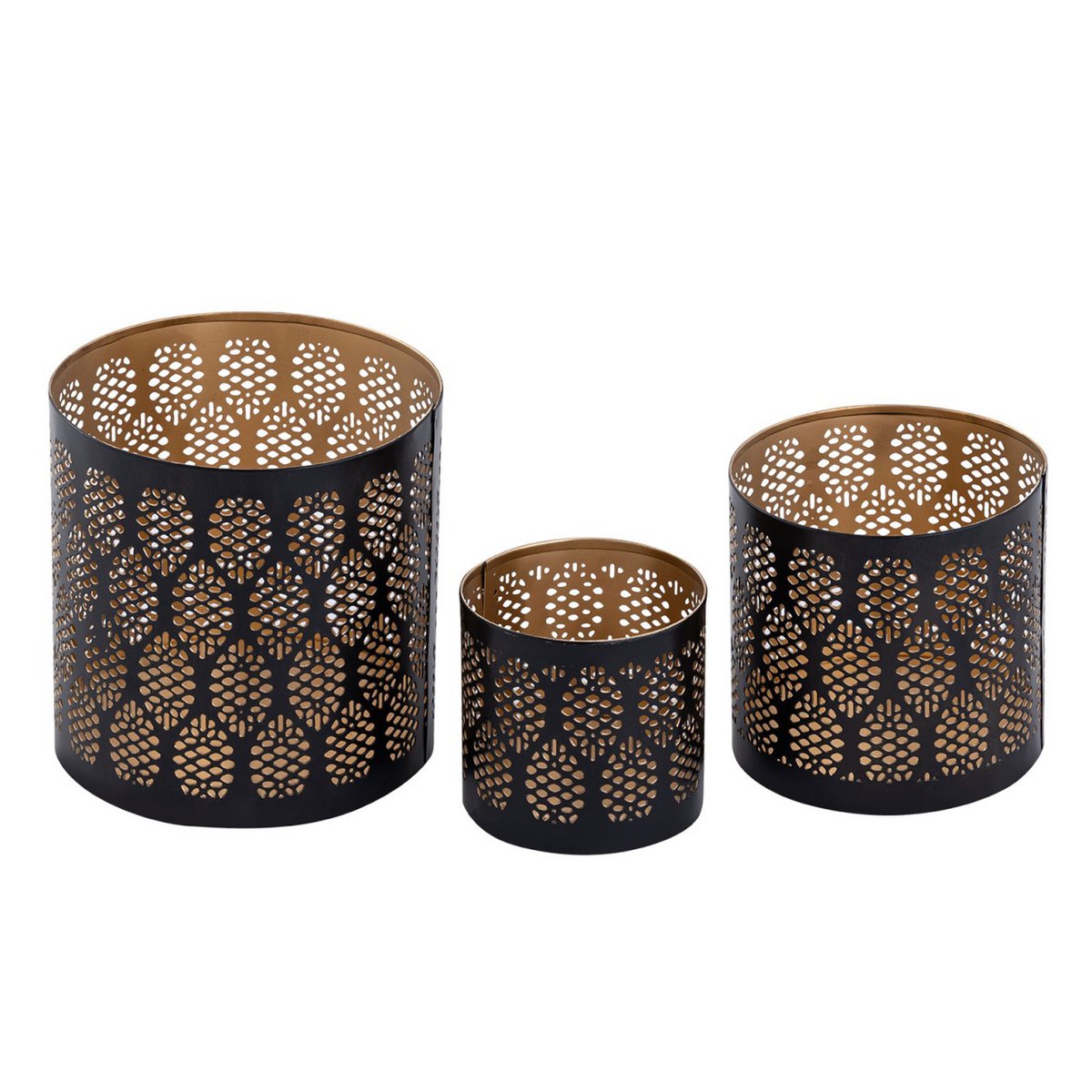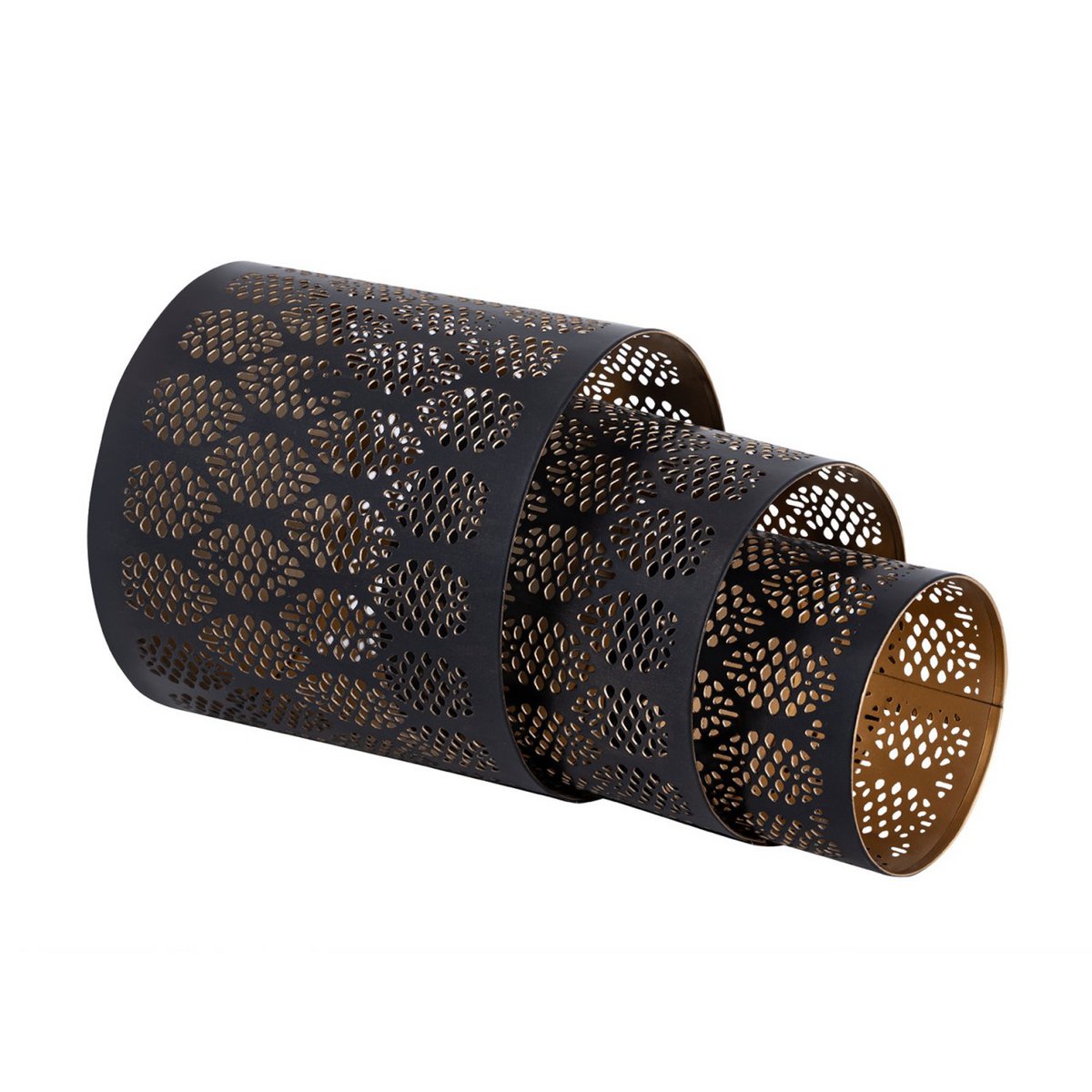 Vielseitig einsetzbar: Das hochwertig verarbeitete Kerzenständer Set 3-teilig aus filigranem Metallblech ist